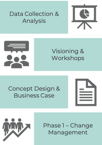 Change Management starts at the very beginning of any project, so by engaging employees from the beginning, they will feel part of the process and will be less resistant to change. There is no one-size-fits-all change management programme. During the research phase of the workplace strategy, a roadmap will be developed based on the findings of the change appetite for each organisation. Once the new workplace has been implemented, our change management support will continue for a few months, following which we will equip your teams with the tools necessary to continue to support employees with the transition.